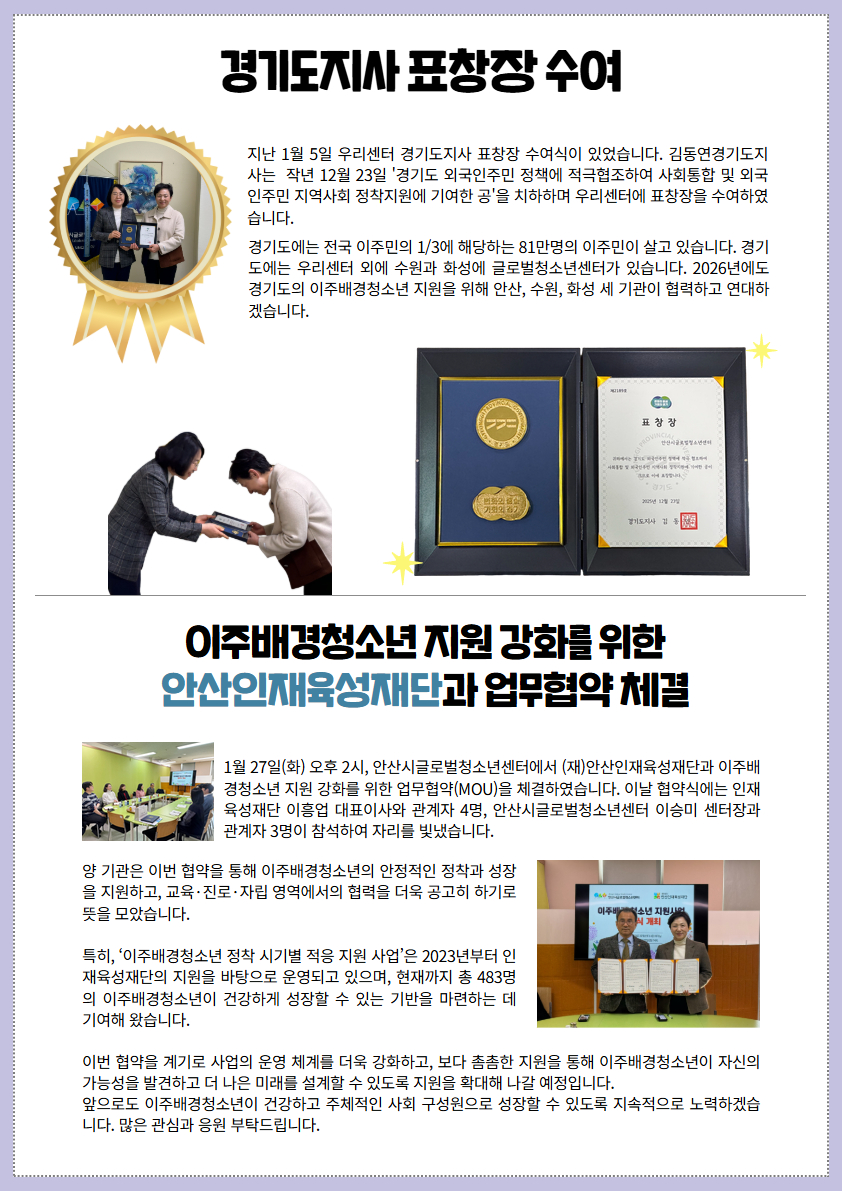 안산시글로벌청소년센터의 월간소식 / 이슈&인물